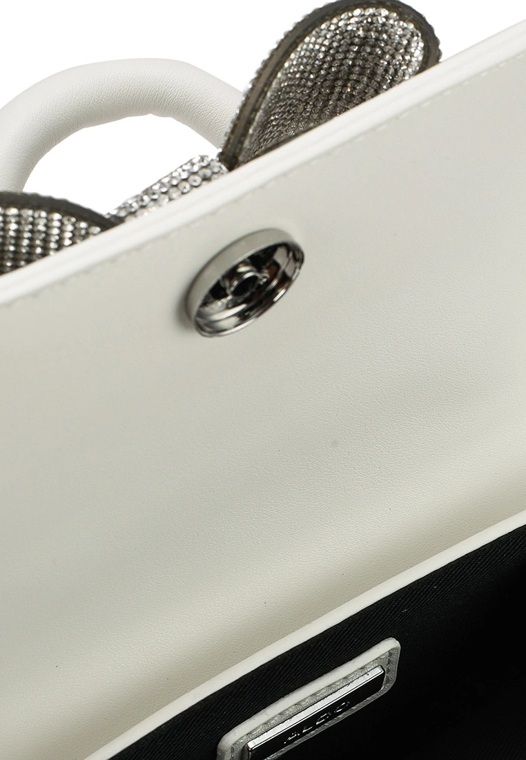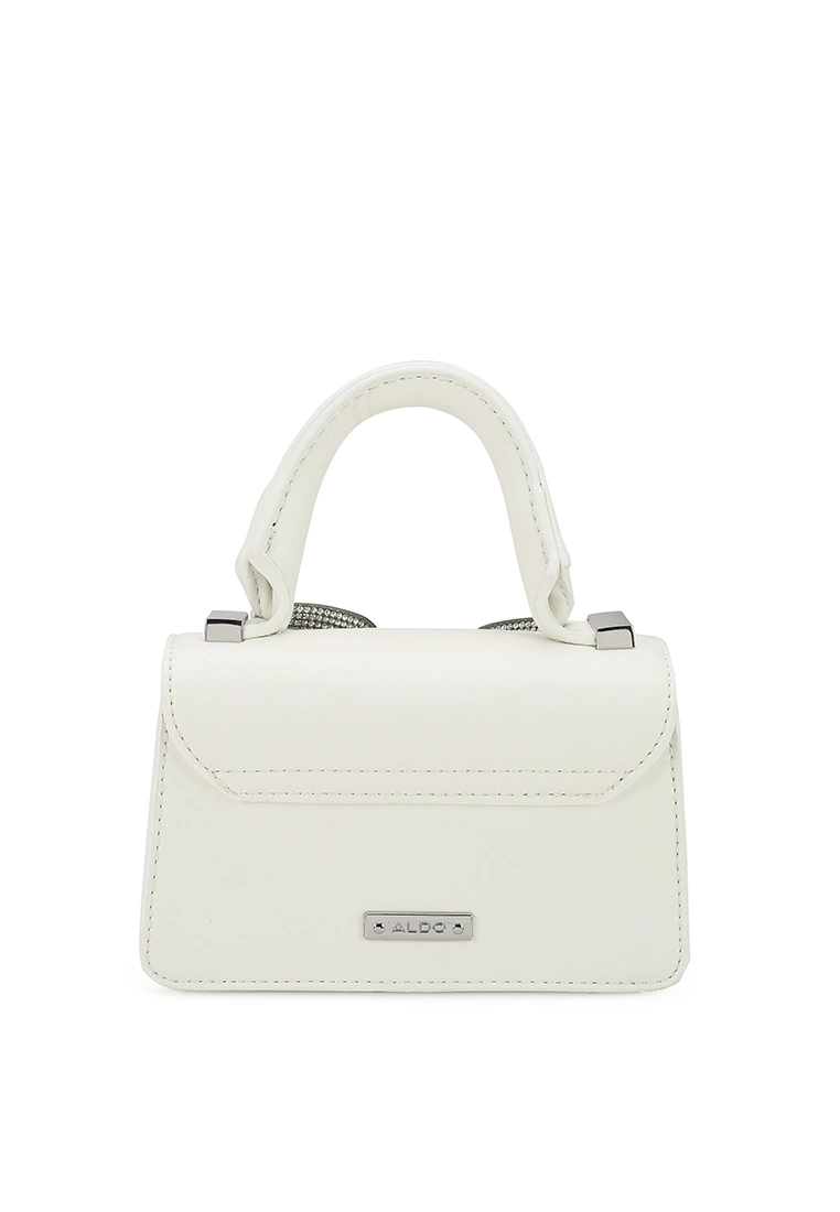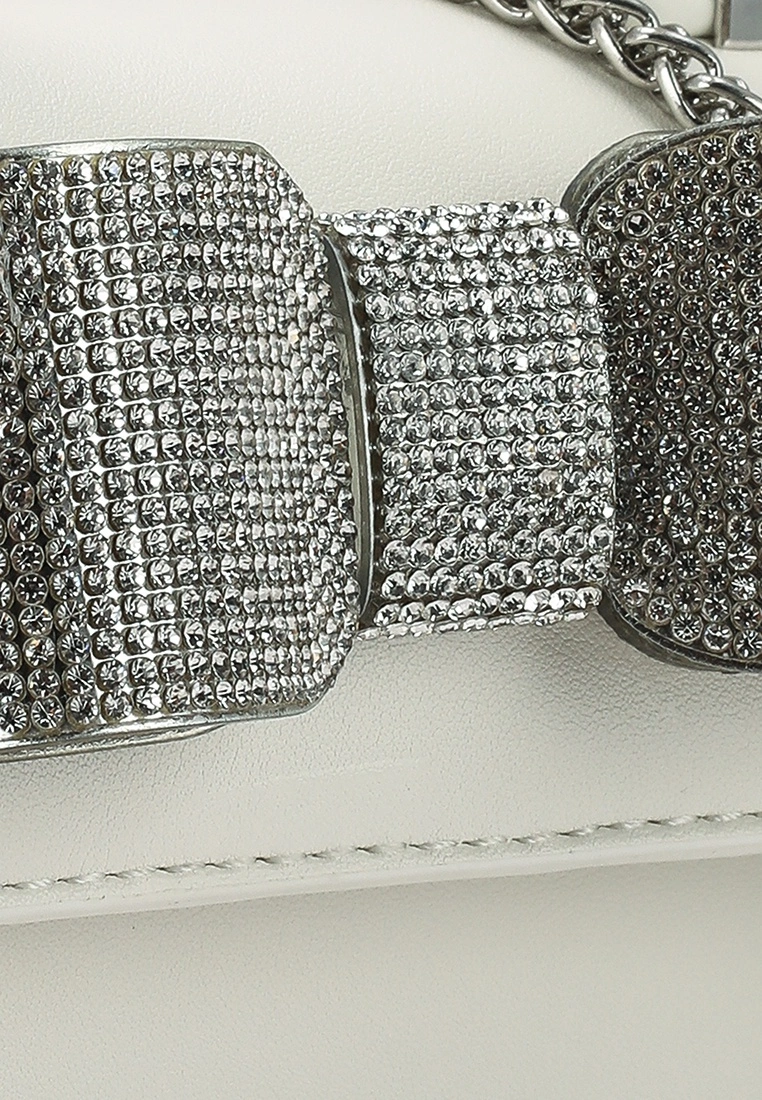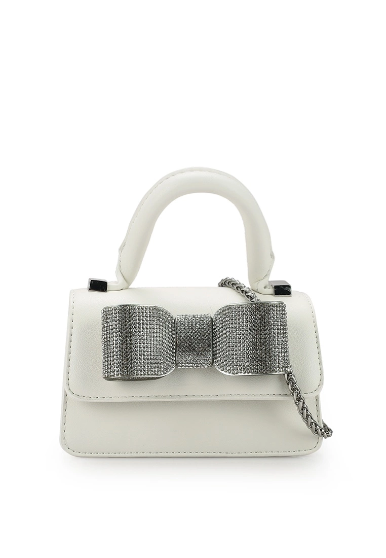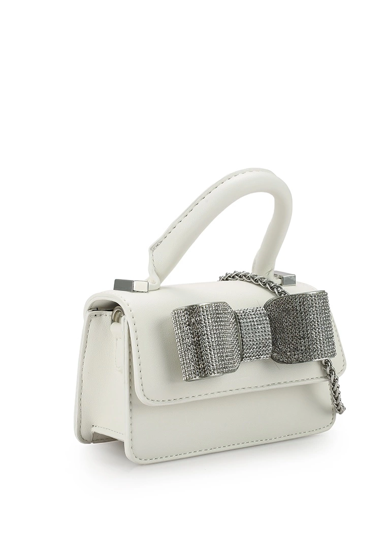 – Monochrome mini top handle bag with crystallised bow accent