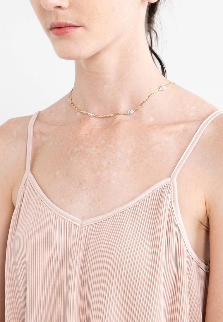 – Gold toned necklace with crystals