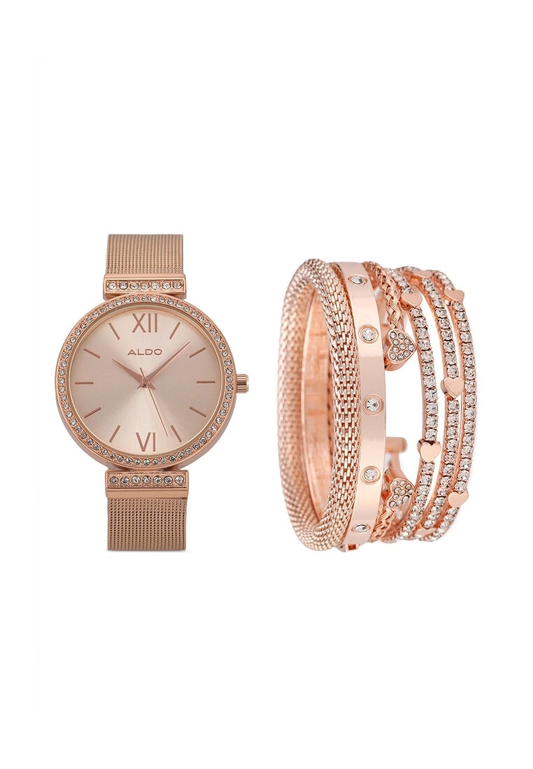 – Rose gold tone mesh strap with diamante watch