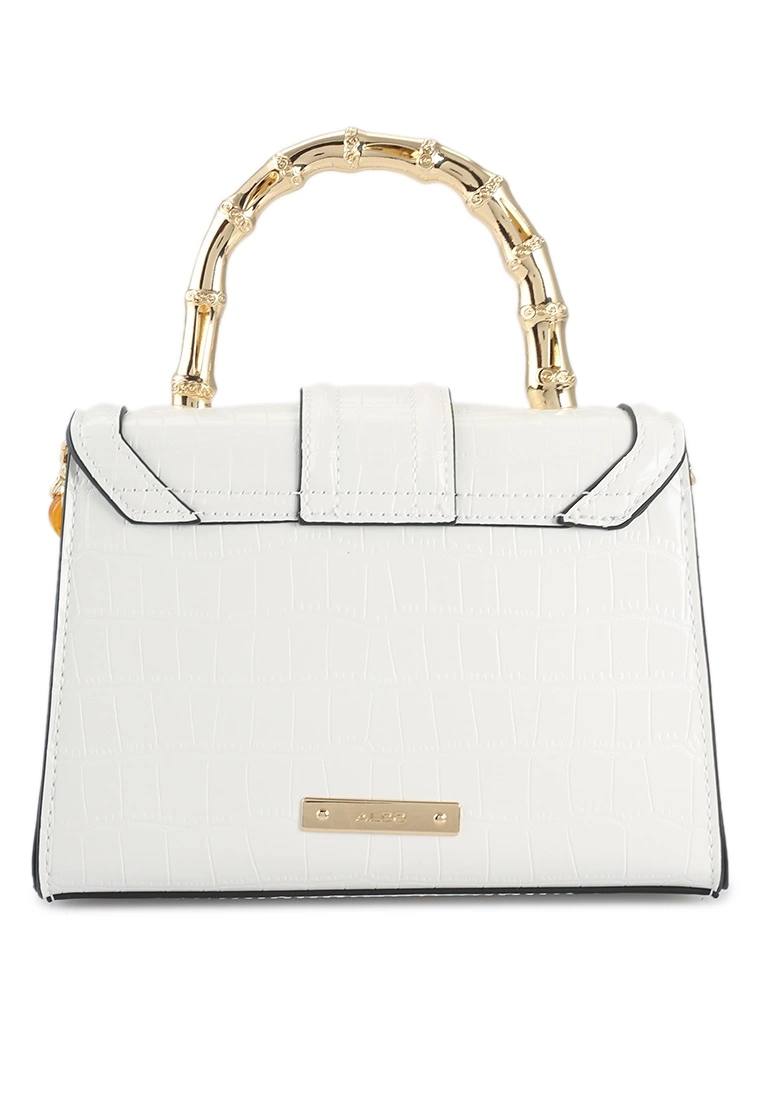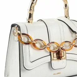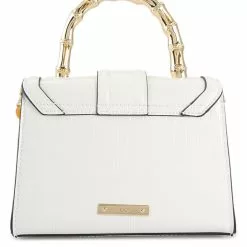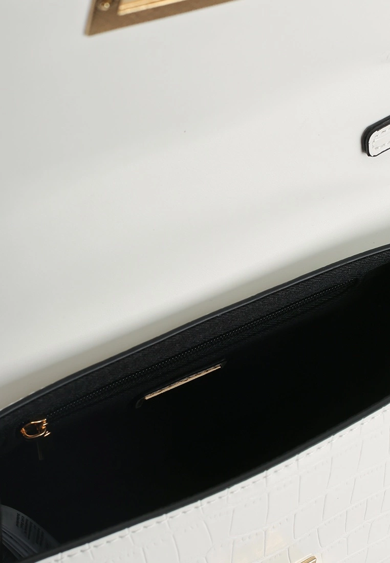 – Solid tone reptile effect faux leather top handle bag