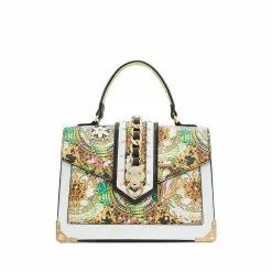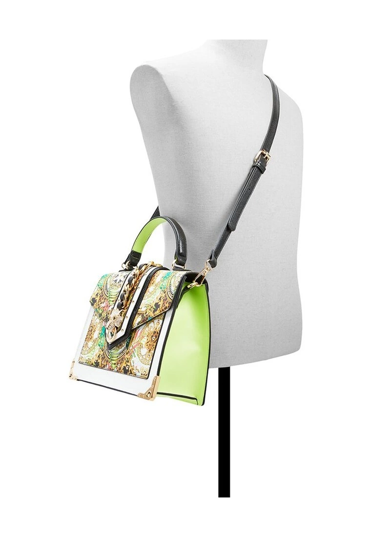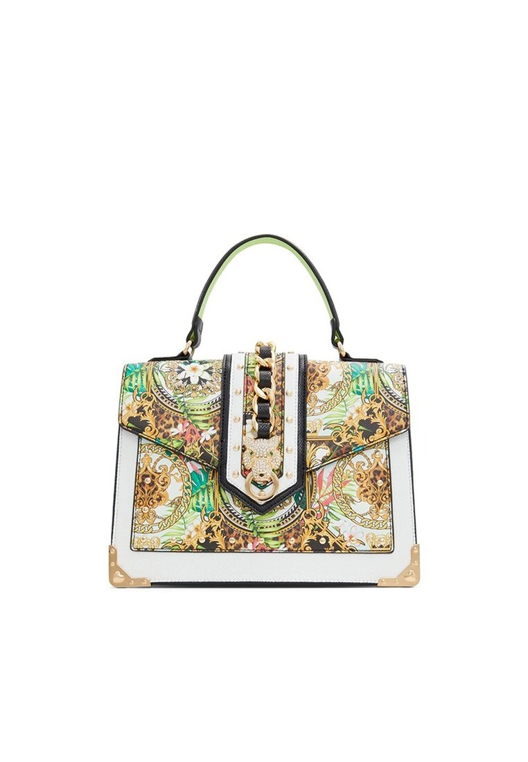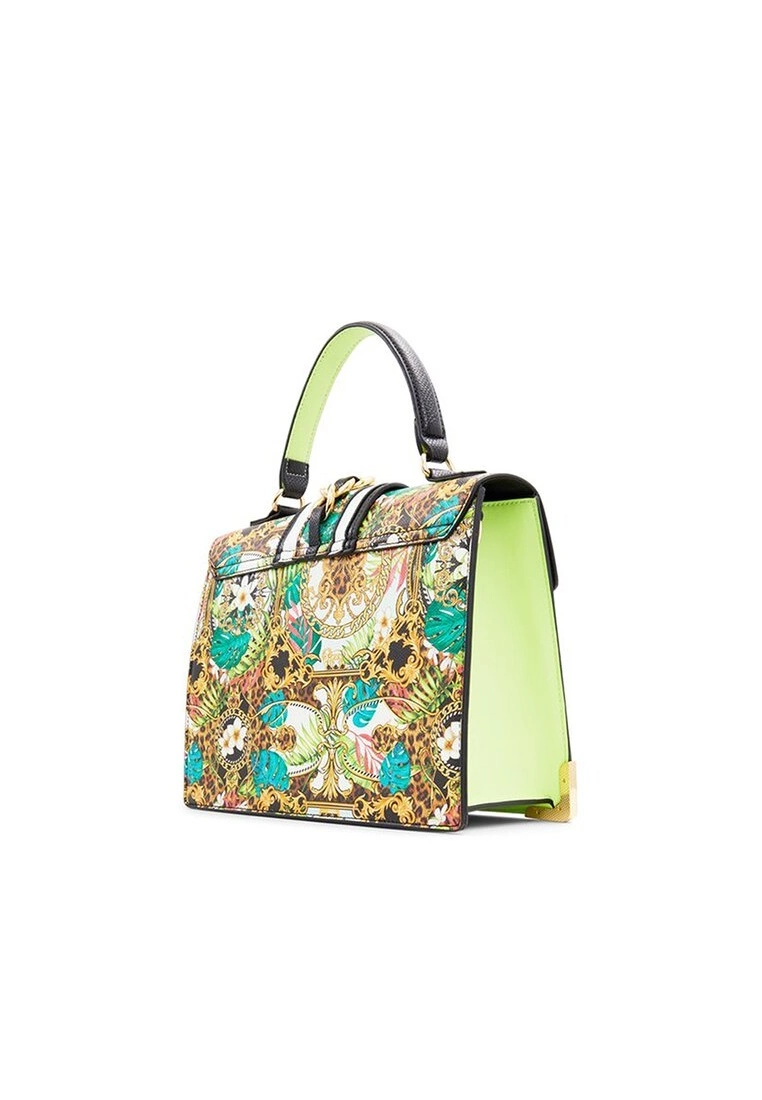 – Colourful printed hand bag with embellish detail