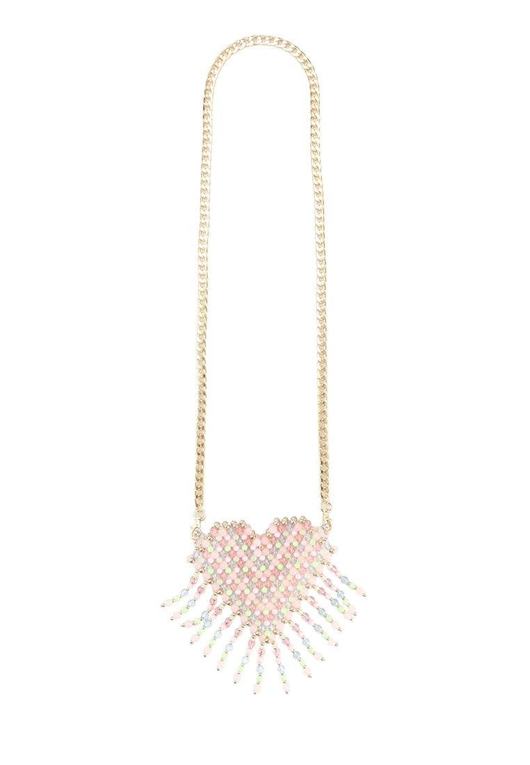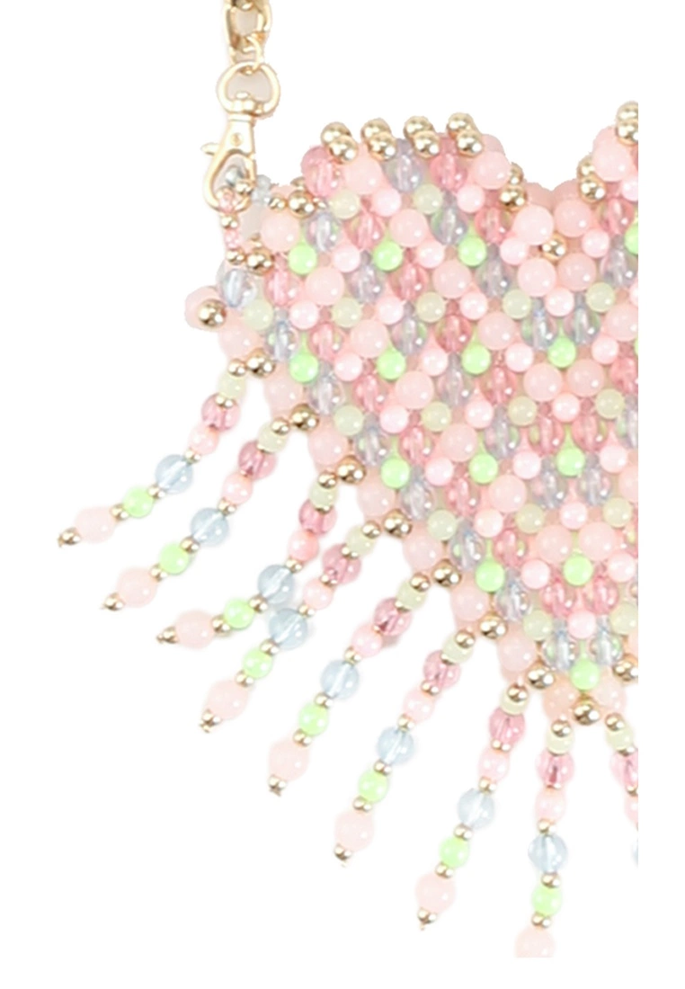 – Multi tone beaded heart shaped cellphone holder with fringed detail