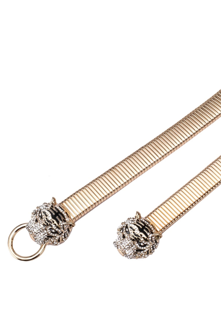 – Tiger motif steel belt– Steel blend– Hook closure