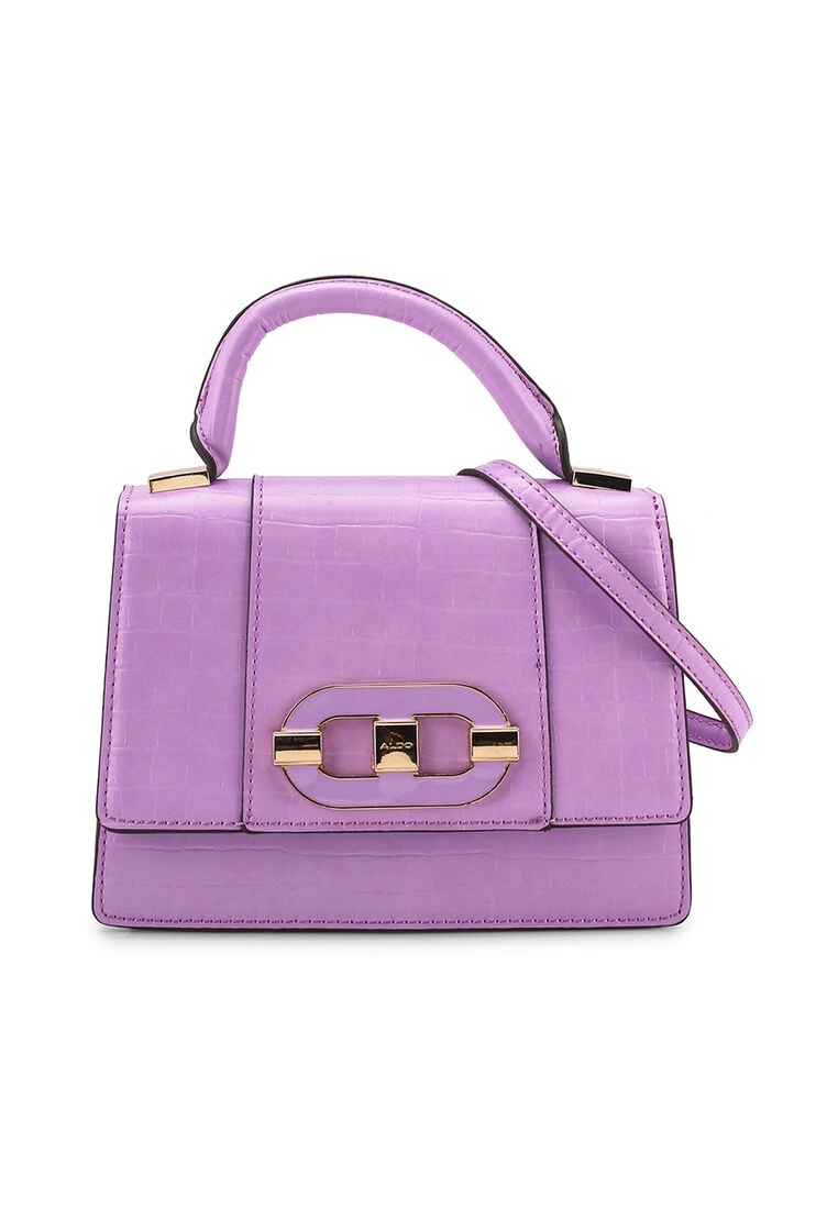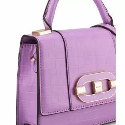 – Solid tone textured faux leather top handle bag
