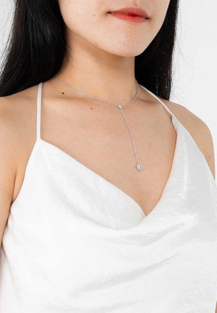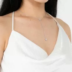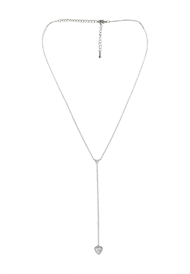 – Silver tone Y-drop chain necklace with embellished heart pendant
