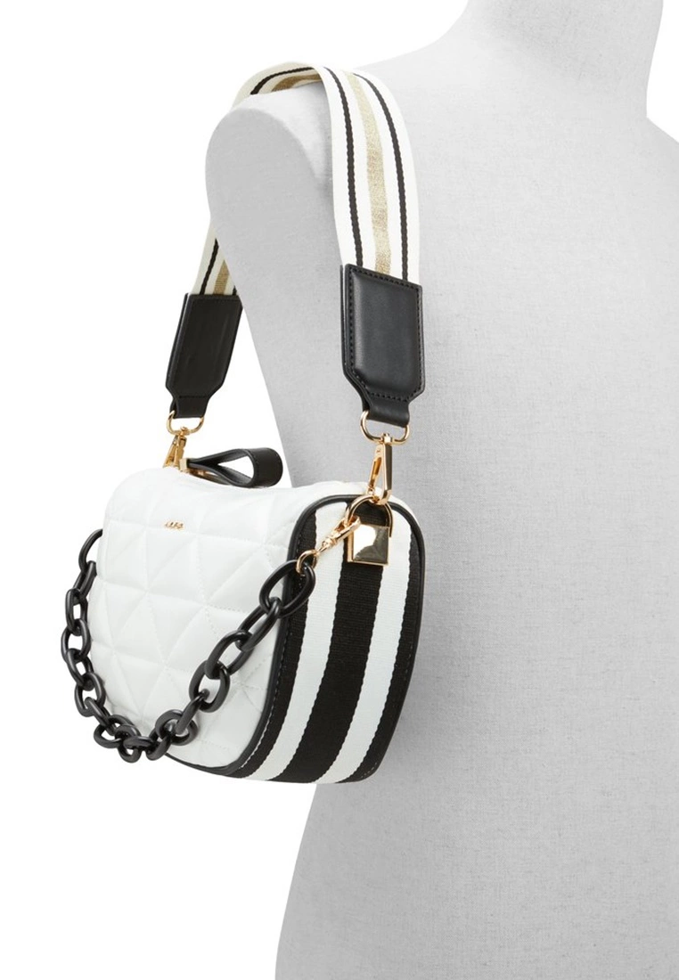 – Small quilted shoulder bag with striped accents