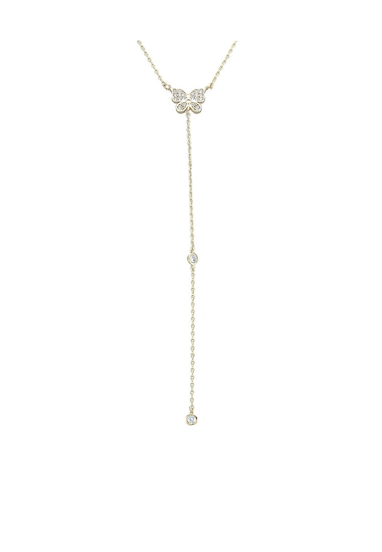 – Gold tone Y-chain necklace with embellished butterfly pendant