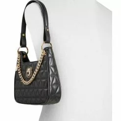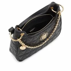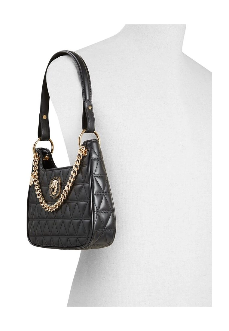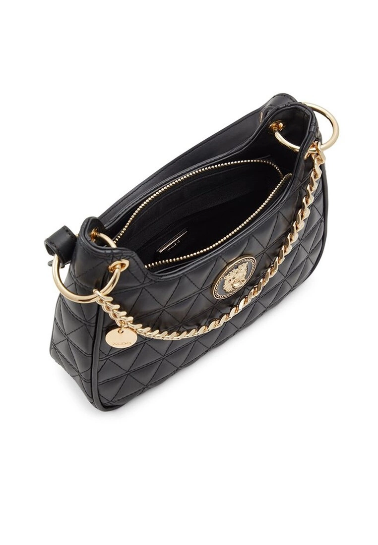– Quilted shoulder bag with gold tone metal hardware and chain accent