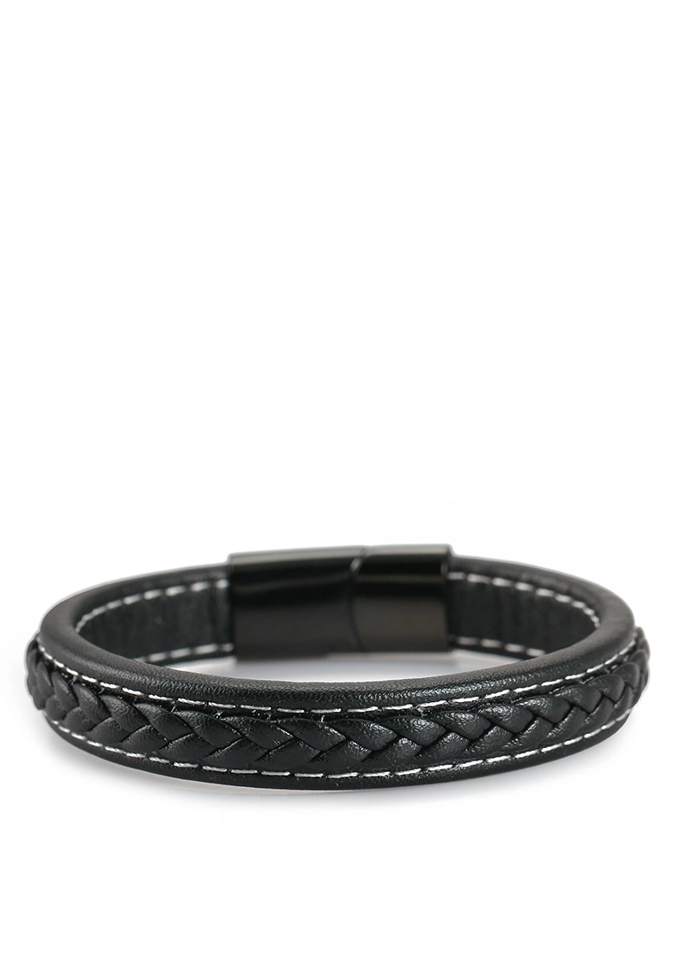 – Solid shade braided leather bracelet