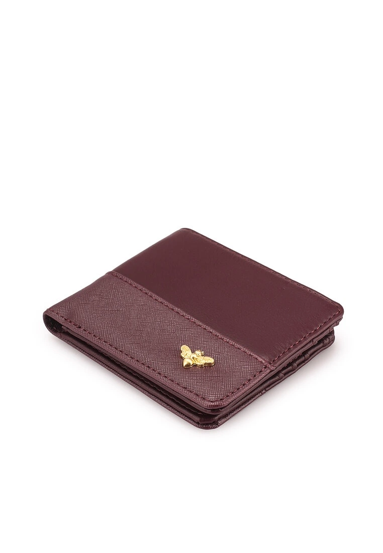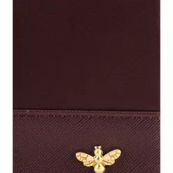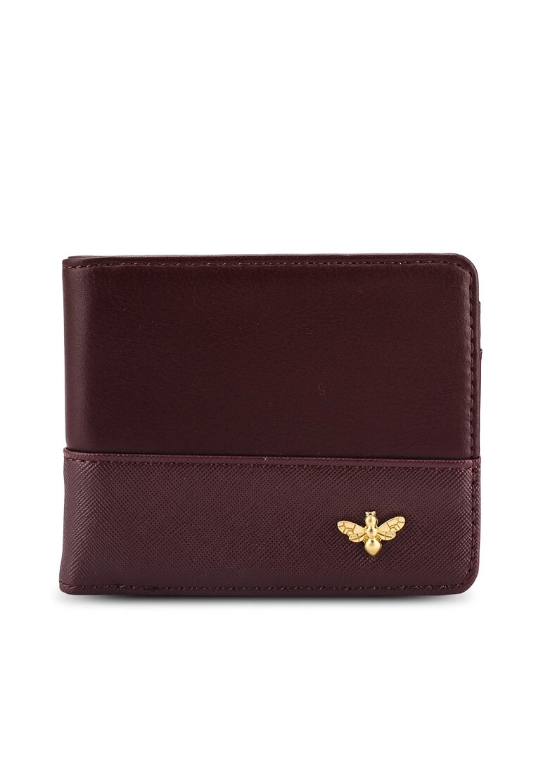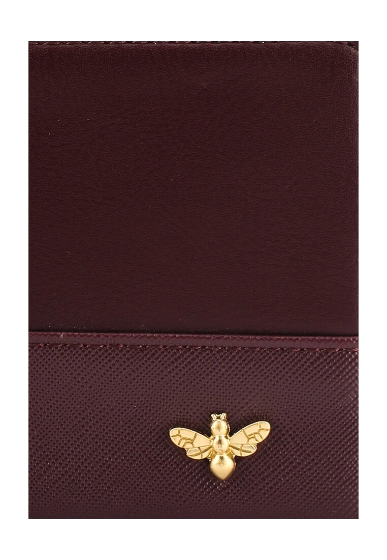 – Solid hue faux leather wallet with metallic bee detail