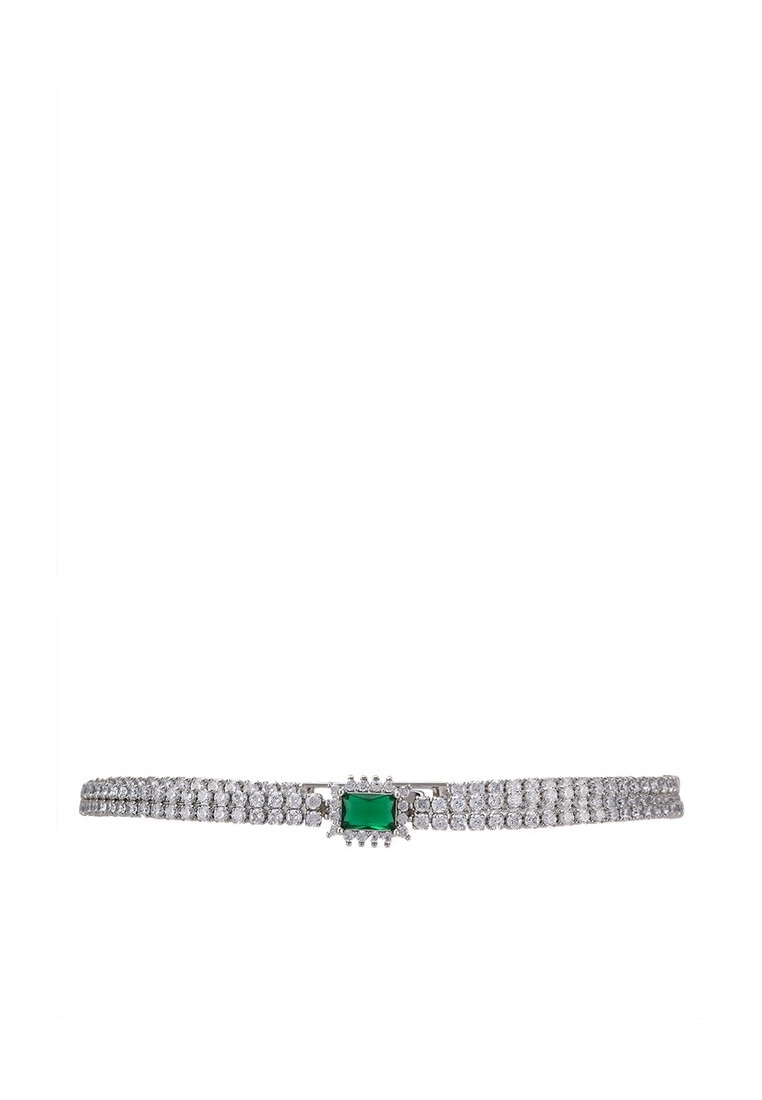 – Silver tone embellished bracelet with contrast gemstone