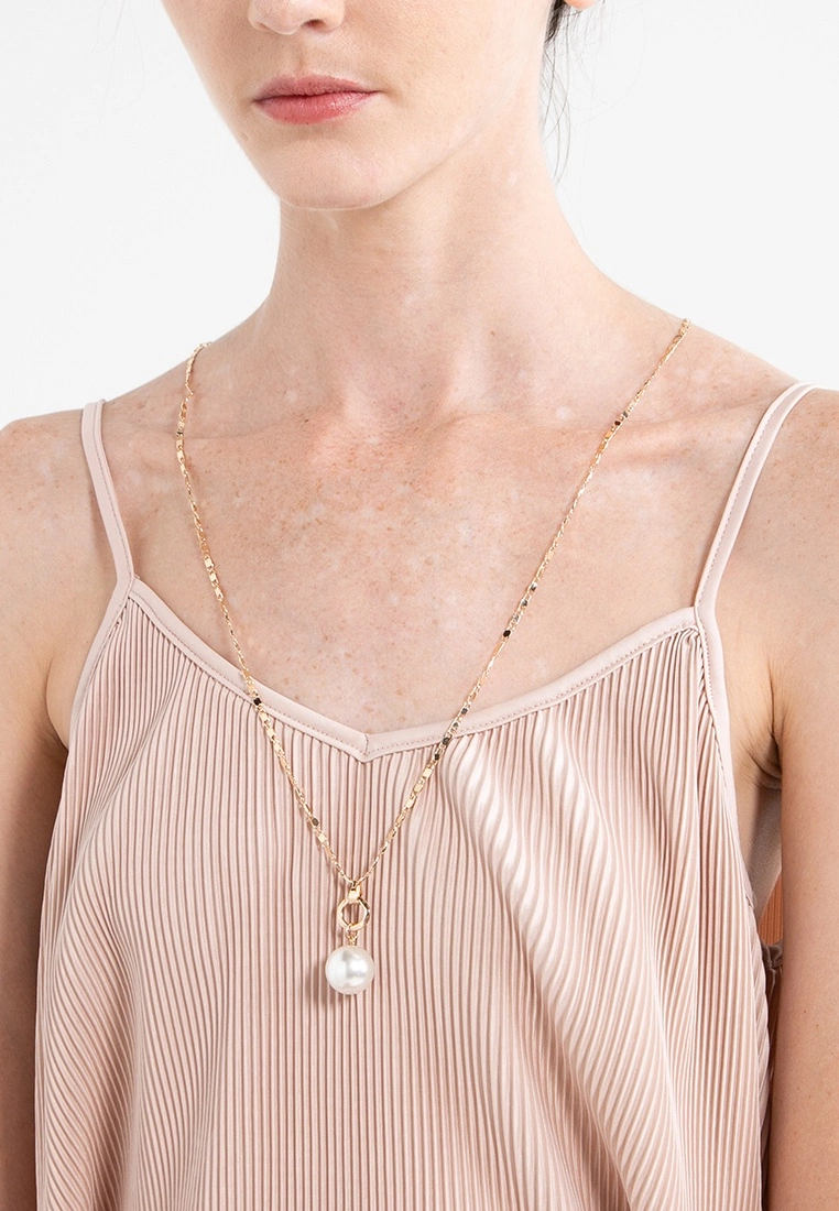 – Gold-tone anchor chain necklace with single faux pearl pendant