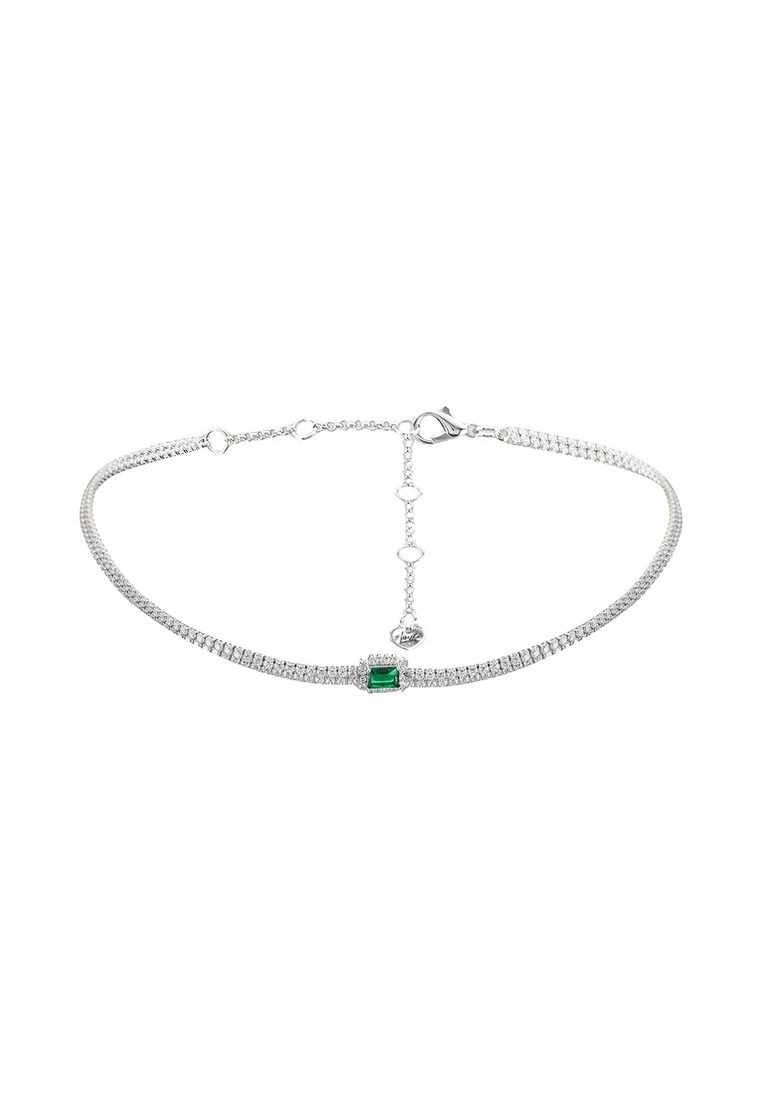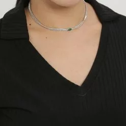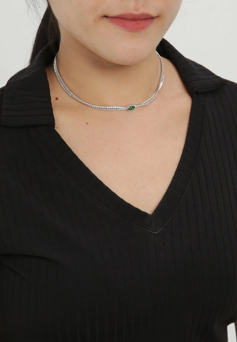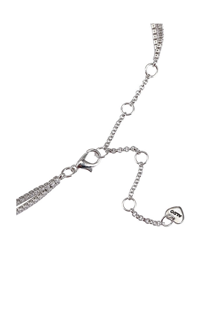 – Silver tone rhinestone embellished layered chain necklace