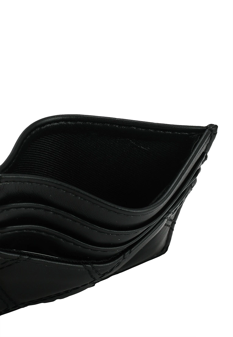 – Solid shade quilted card holder with embossed logo
